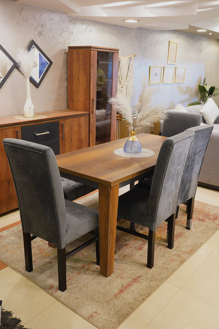 سفره خشب زان و قماش قطيفة 5 قطع - أسود و بني كود Diningtable11003