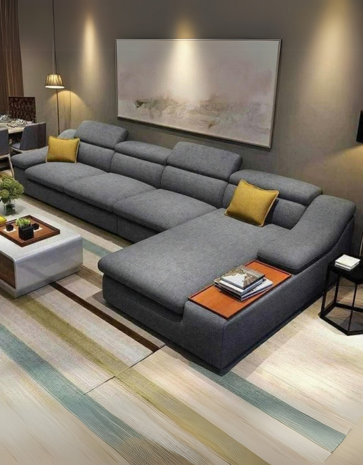 كنبة ركنة خشب زان و قماش كتان - رمادي كود sofa10039