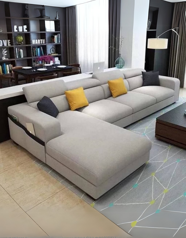 كنبة ركنة خشب زان و قماش كتان - رمادي كود sofa10038