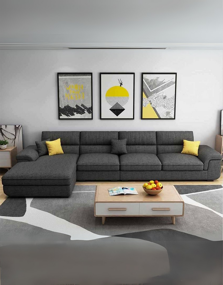 كنبة ركنة خشب زان و قماش كتان - رمادي كود sofa10027