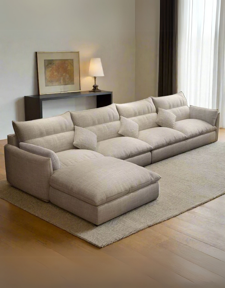 كنبة ركنة خشب طبيعي و قماش كتان - بيج كود sofa10040